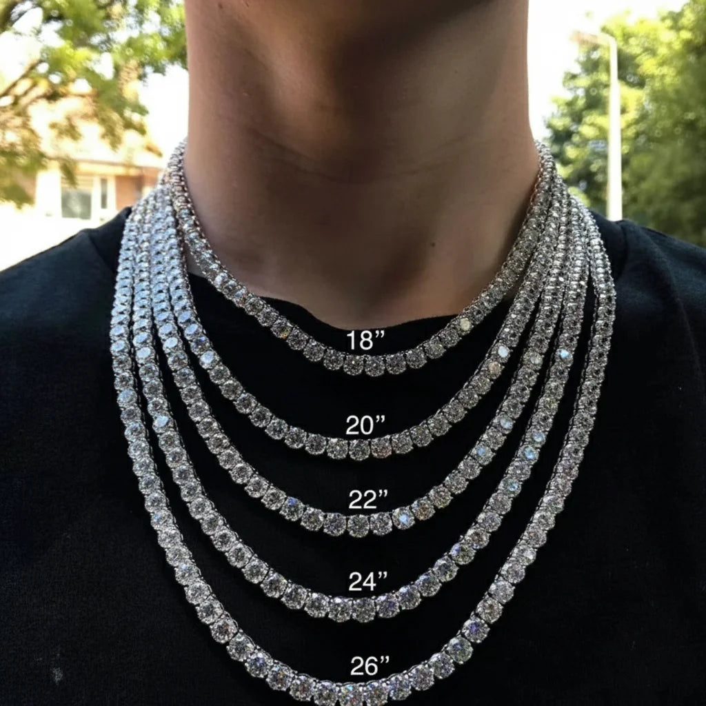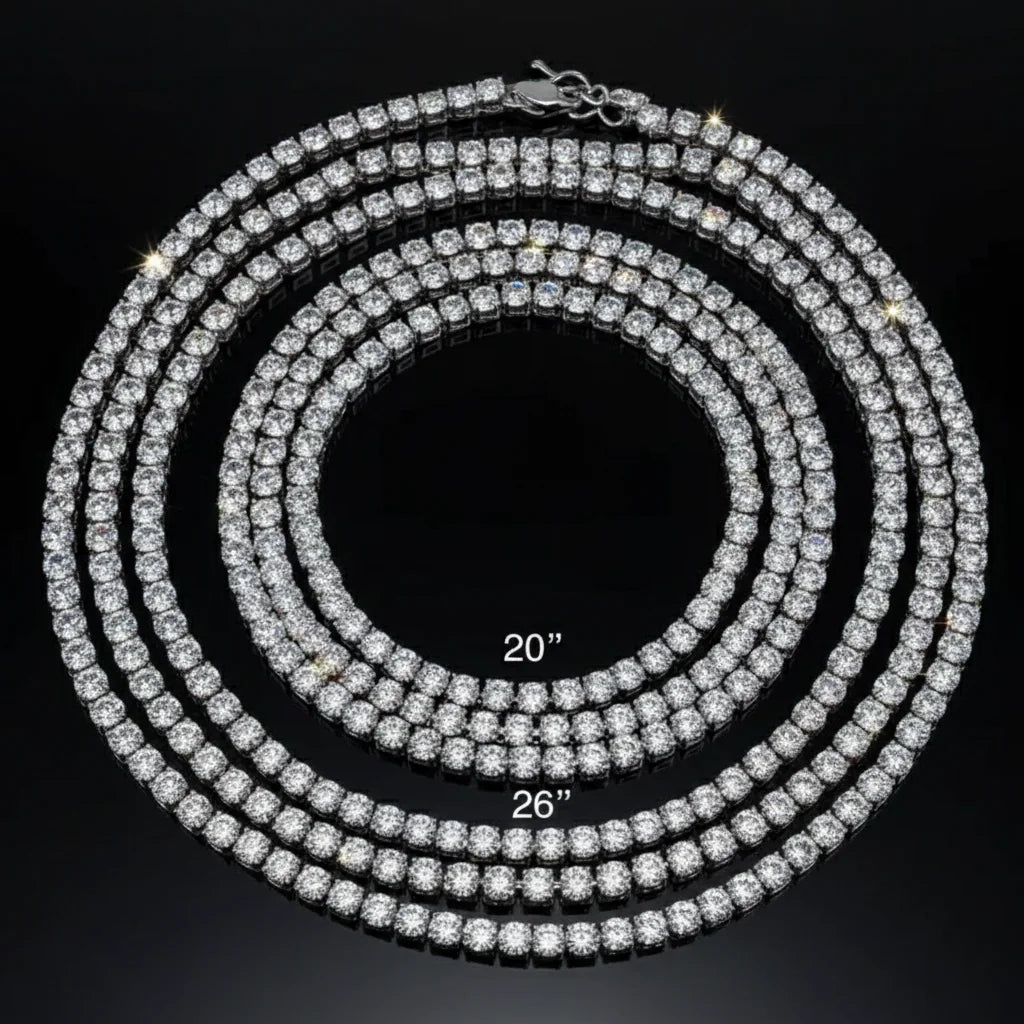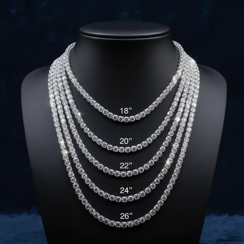 Our Zircon Tennis Necklaces feature brilliant, high-quality zircon stones that deliver an incredible sparkle, rivaling genuine diamonds. They are meticulously crafted for durability and designed to make a bold, unforgettable statement.